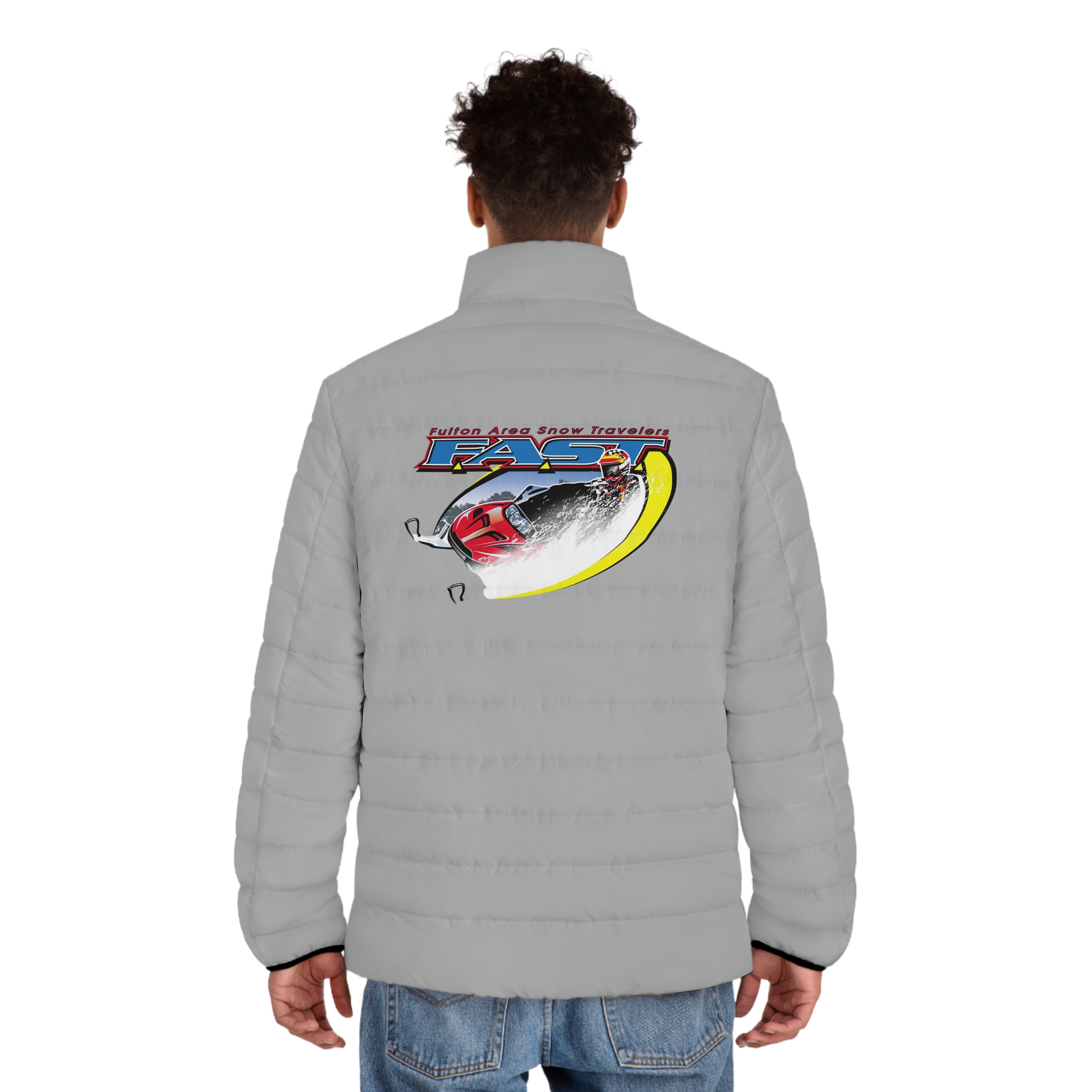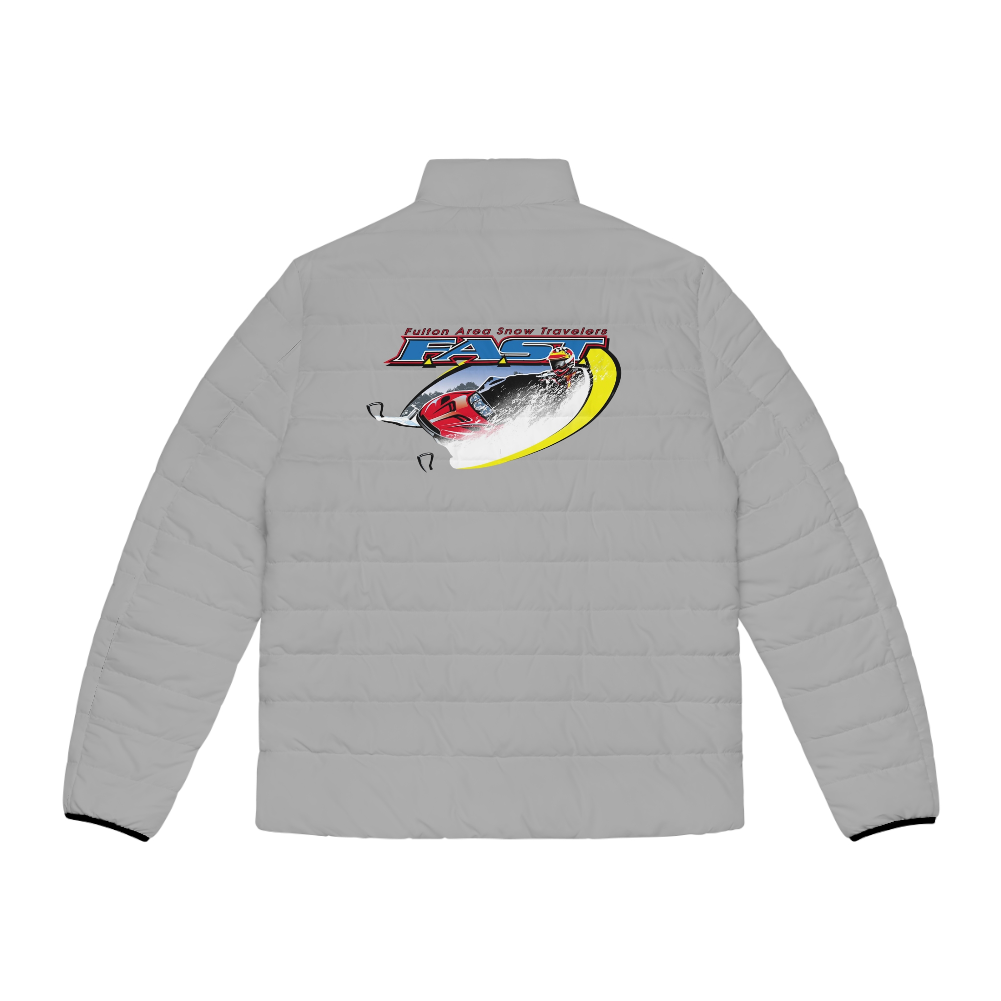 This lightweight puffer brings motion and vintage race-day energy to cold mornings. Quilted in a regular stand-up silhouette, it slips on easily over a sweater and keeps you warm without bulk. The back art evokes a speeding car and blurred lines — a reminder of open roads, late-night drives, and the rush before a big race. Built with a soft black cotton-like lining and elastic cuffs, it moves with you and traps heat where you need it. Practical pockets and a durable zipper mean this jacket is ready for weekend trips, crisp commutes, or layering for evening events.